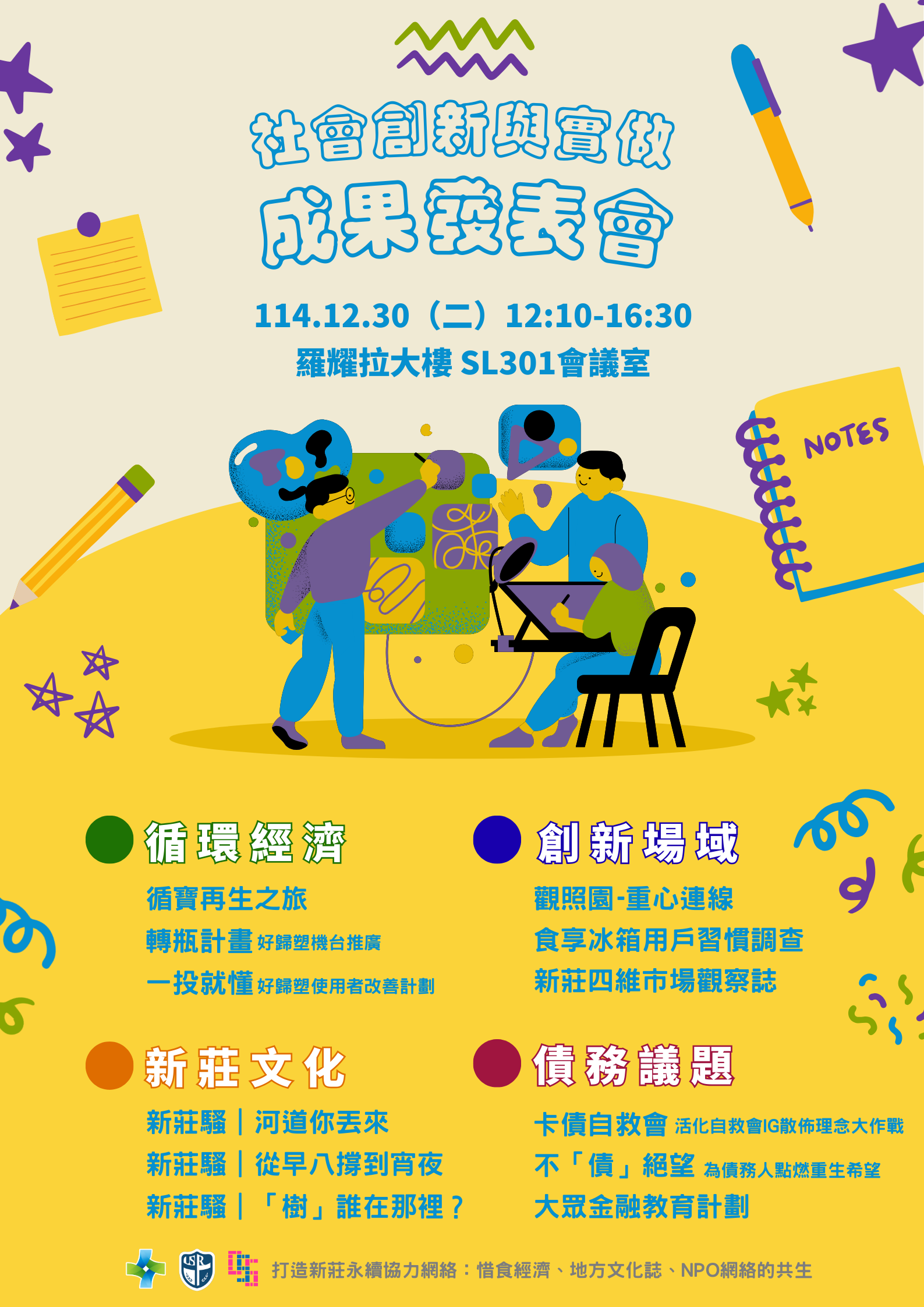 整體而言,在本學期的學習過程中,學生不僅培養了發現問題與解決問題的能力,更學會了如何與實際場域合作,將課堂知識轉化為具體行動。透過這次成果發表會,學生展現了社會創新思維的實踐成果,同時也為未來持續關注社會議題奠定了良好基礎。
