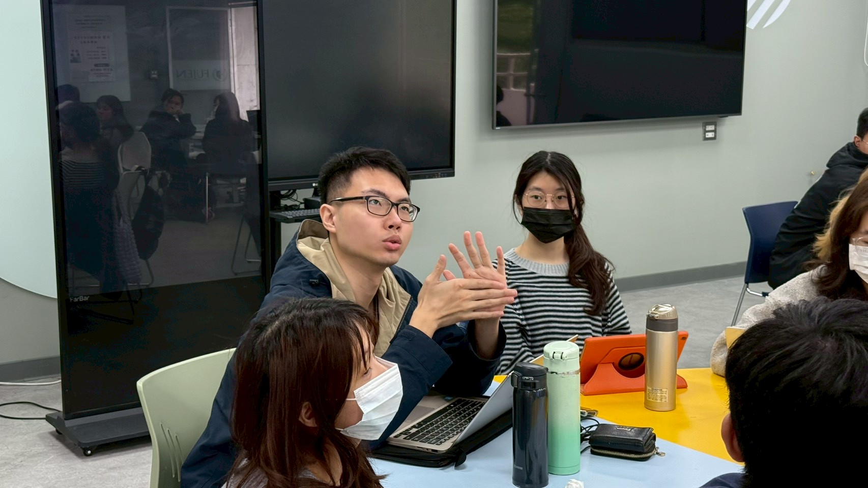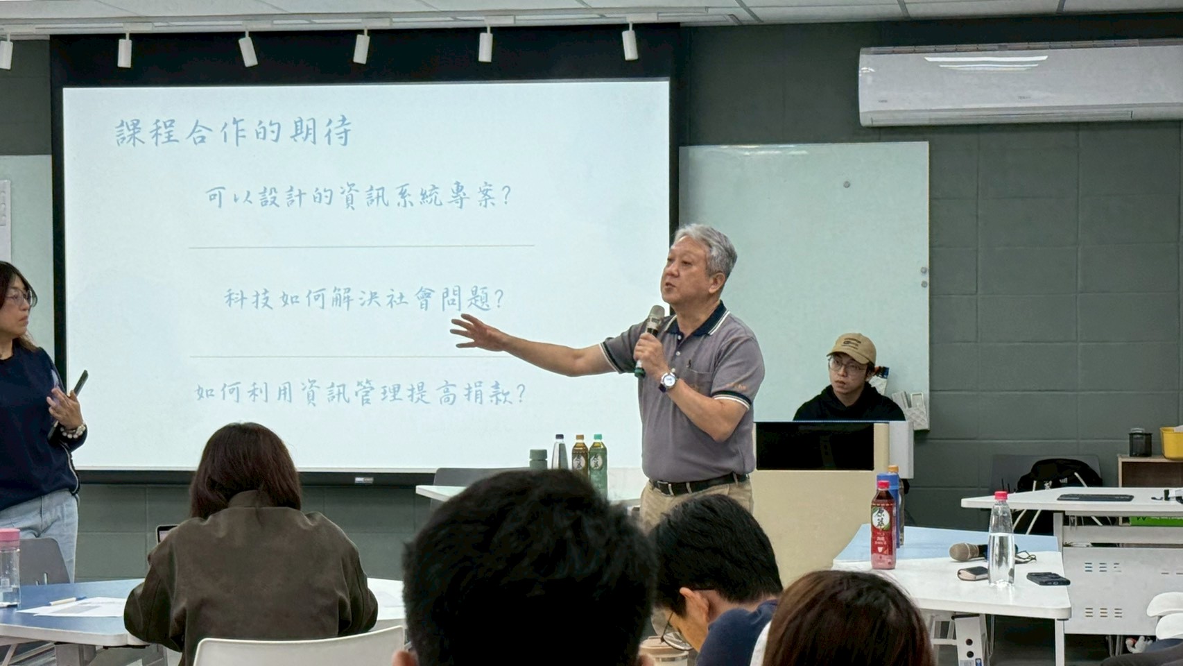 ▲盧副執行長向學生說明忠信食物銀行的服務流程及目前痛點